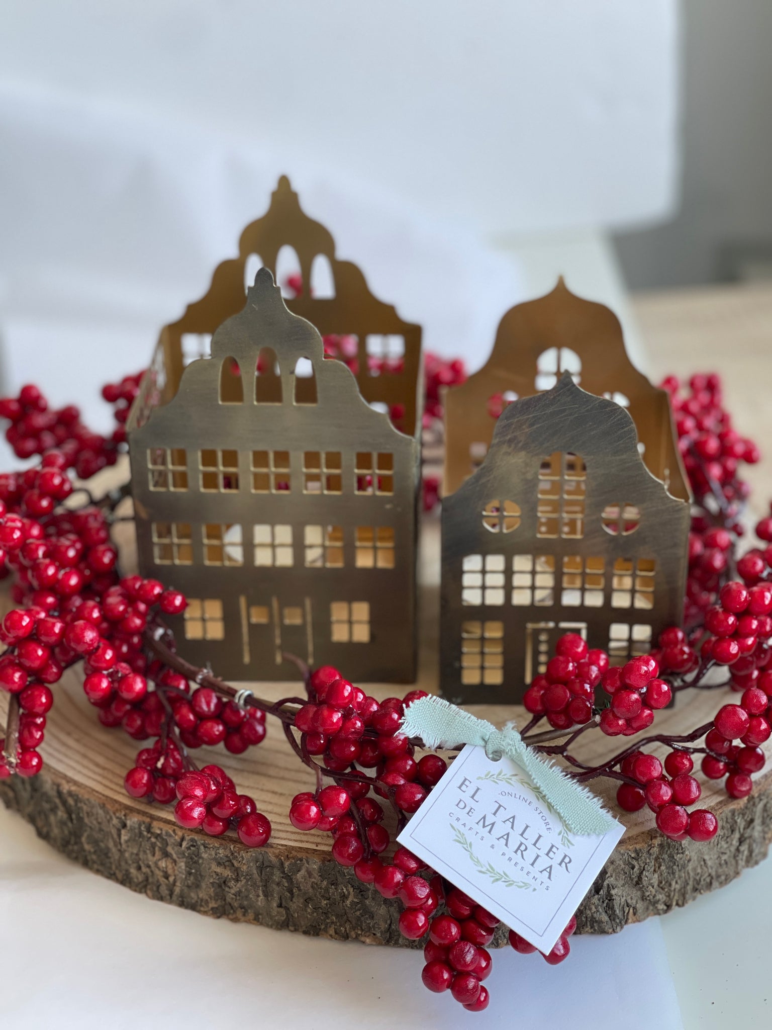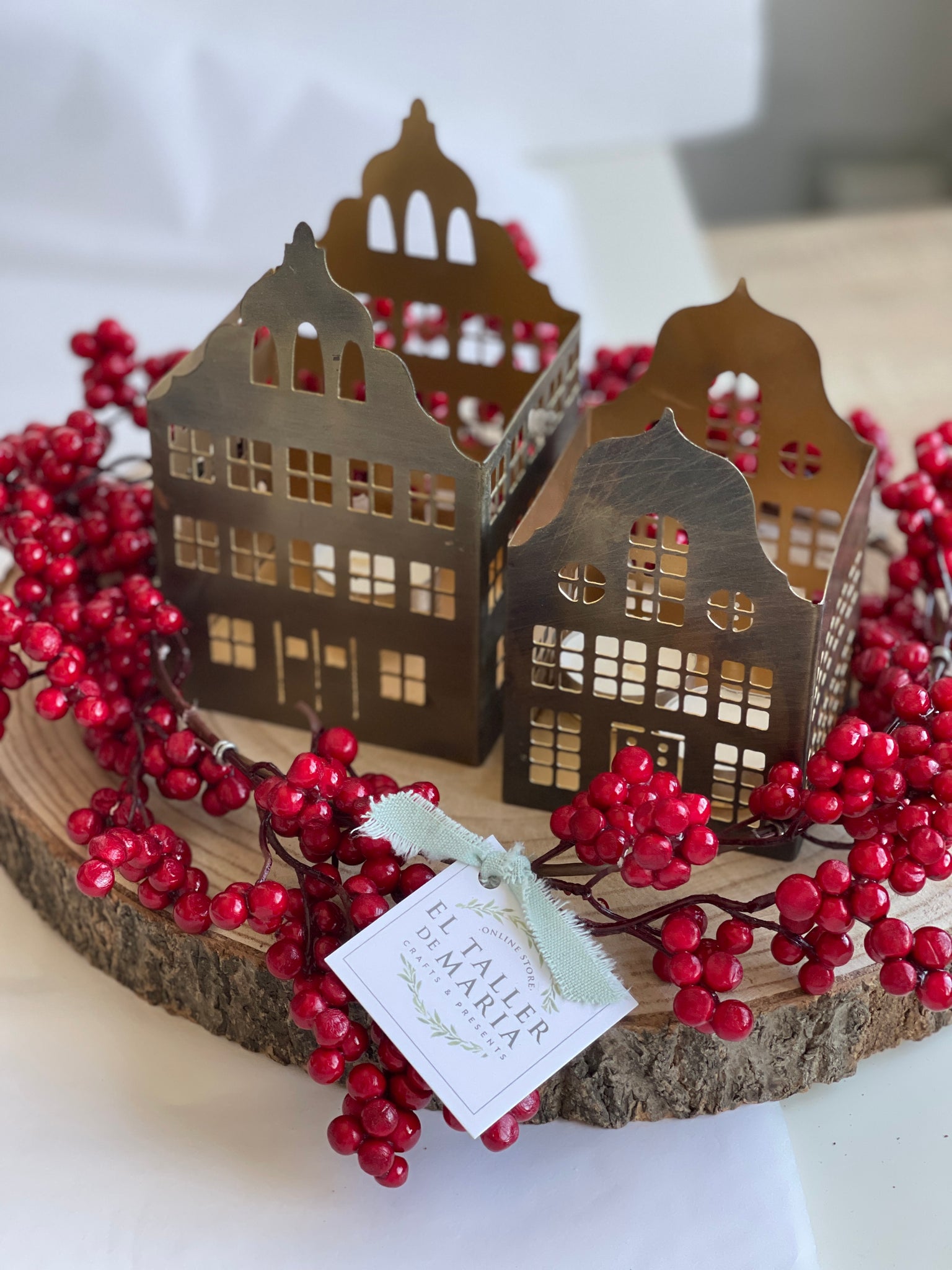 Dos portavelas de latón con vela incluida